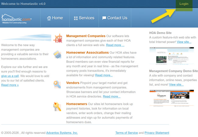 you by Advantos. If one of your clients manages their own site select "HOA" instead