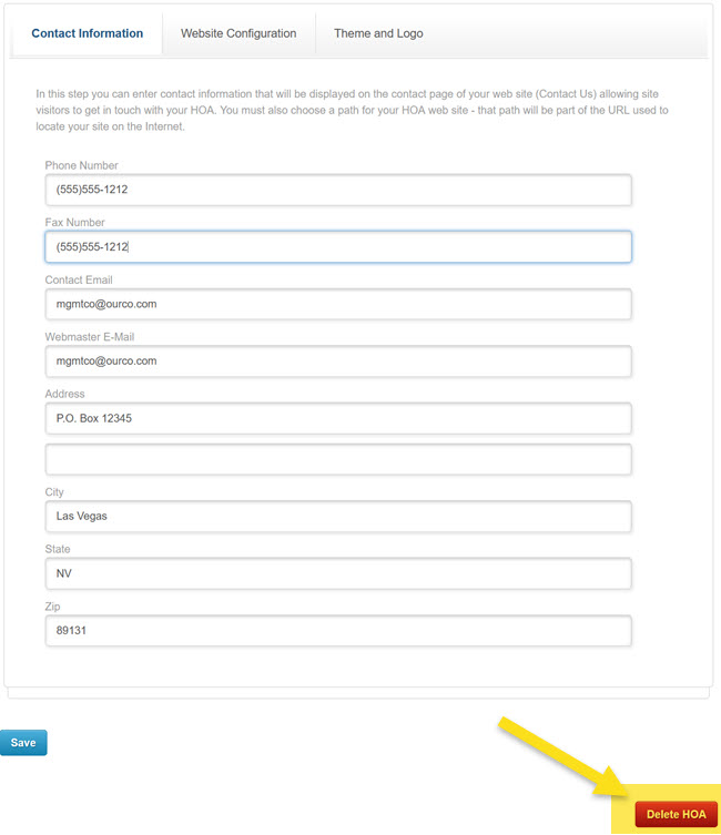 On the bottom right of the HOA/Client's web configuration page is a [Delete HOA] button.